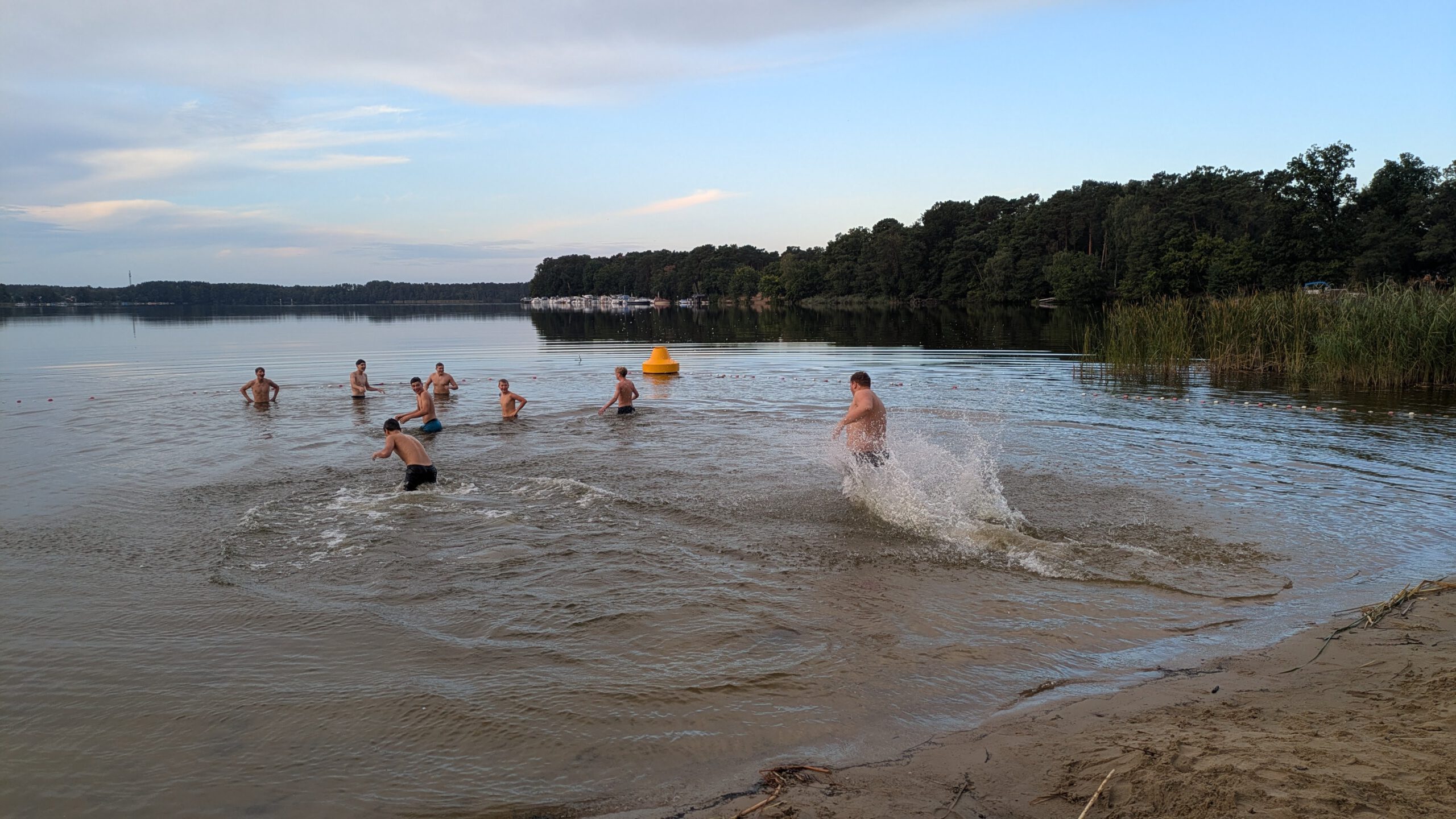 Am Freitag, den 05. September trafen sich die 16 Jungs an der Goldbacher Sporthalle, packten die beiden Boreas-Busse voll bis unters Dach und machten sich auf den Weg zur Unterkunft „KiEZ Hölzerner See“ nahe Berlin. Dort hieß es dann auch erstmal schnell Abendessen fassen und Zimmer beziehen, bevor es zu einer kleinen Erkundungsrunde durchs Gelände ging. Badesee, Volleyball-Platz, Tischtennis waren einige Stationen, die die Jungs begeistert aufgenommen haben. Wie sich herausgestellt hat, ist Volleyball im Dunkeln doch keine gute Idee (-;